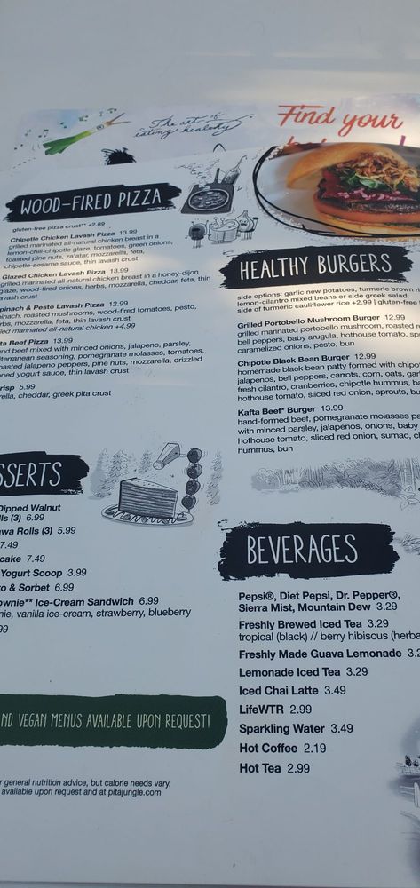 Welcome to Pita Jungle Scottsdale, where health meets flavor in an inviting New American dining space. Located at 7366 E Shea Blvd, this gem offers a diverse menu designed to satisfy a variety of palates. Start your meal with their enticing Sizzling Salads, such as the Lentil Fetoosh Salad, boasting lentils, organic brown rice, and a vibrant mix of vegetables. Vegetarian options shine alongside grilled, all-natural chicken salads, ensuring there's something for everyone.